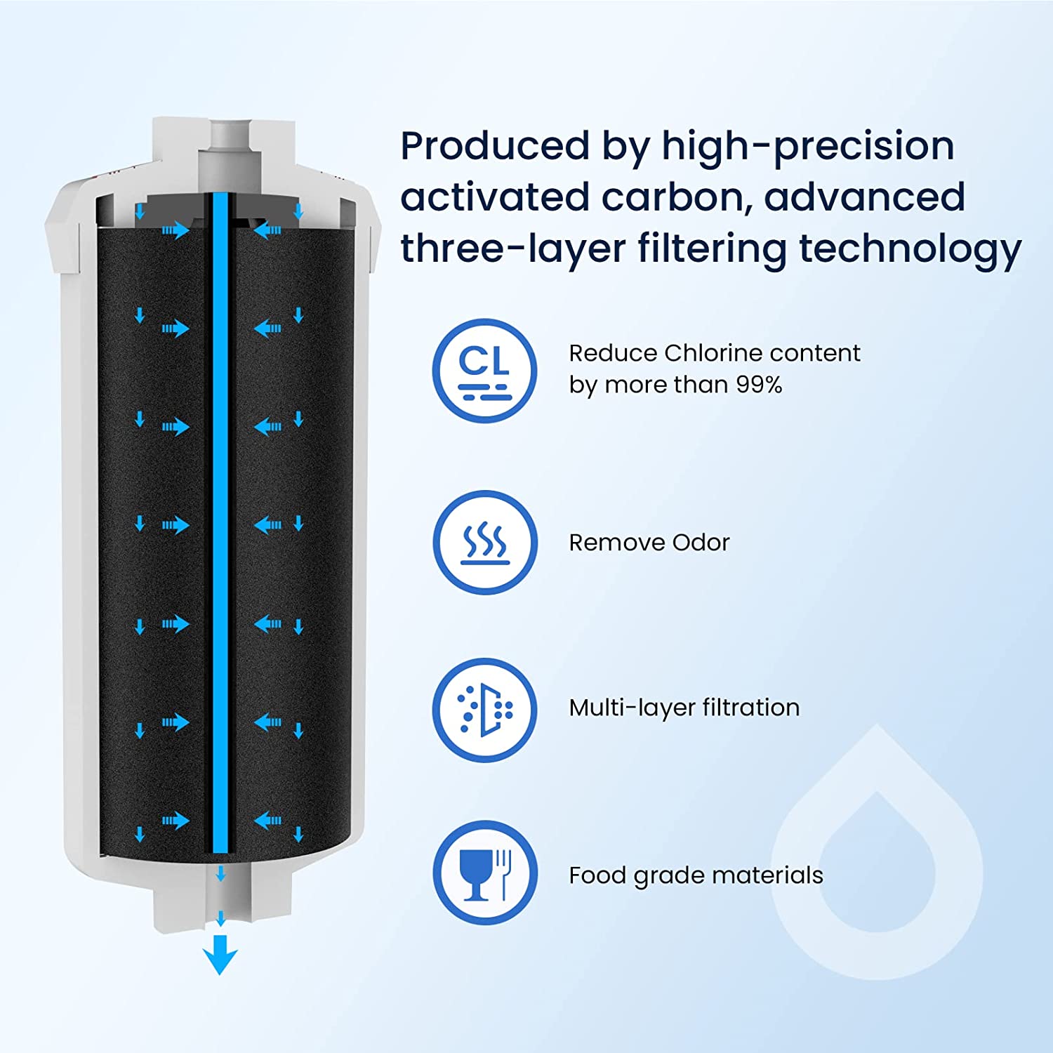 Glacier Fresh Statement: Tested & verified by independent laboratory testing, it can effectively reduce the content of fluoride and arsenic to absorb fluorine, arsenic, and other typical residual heavy metal ions.