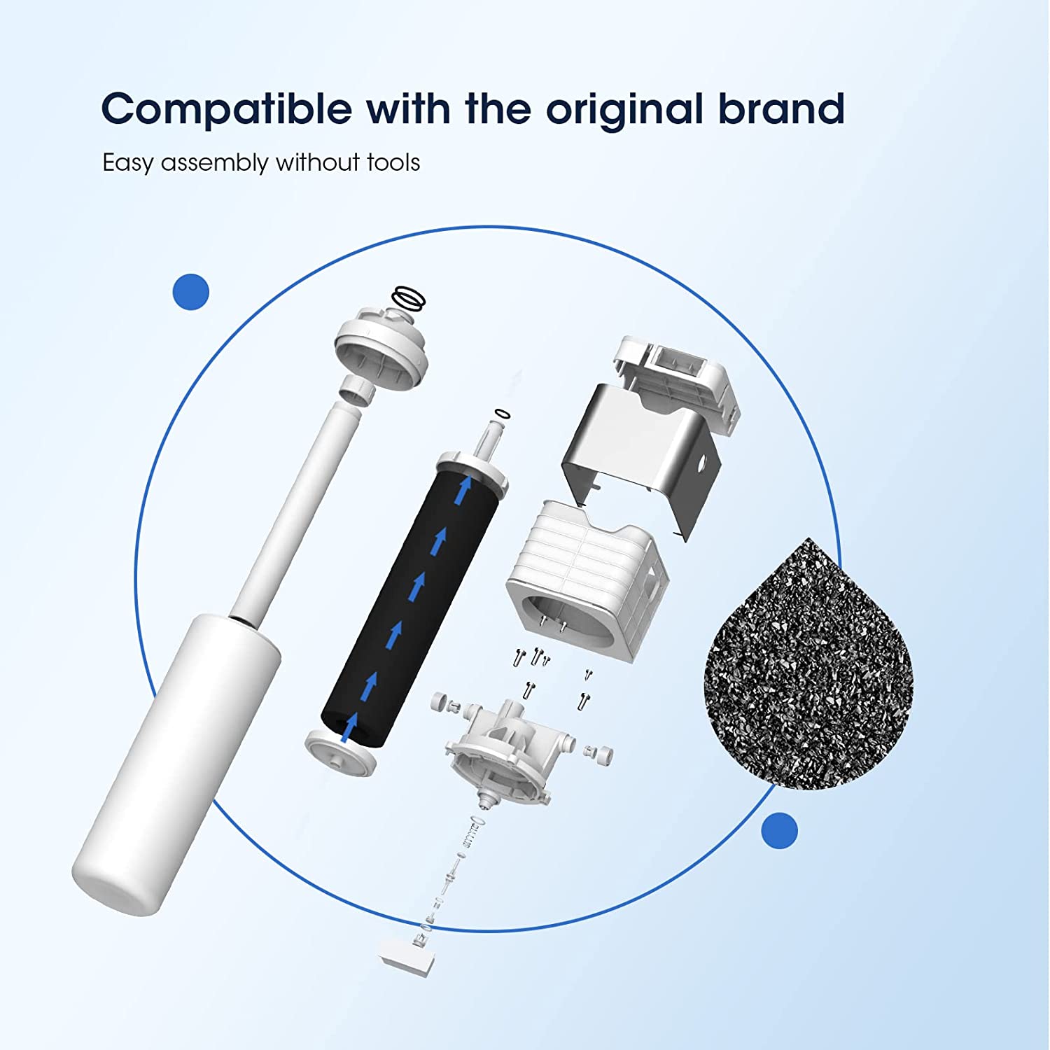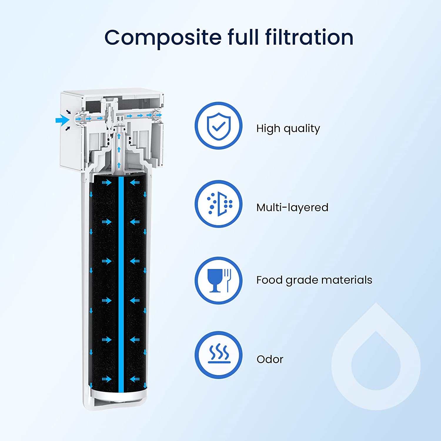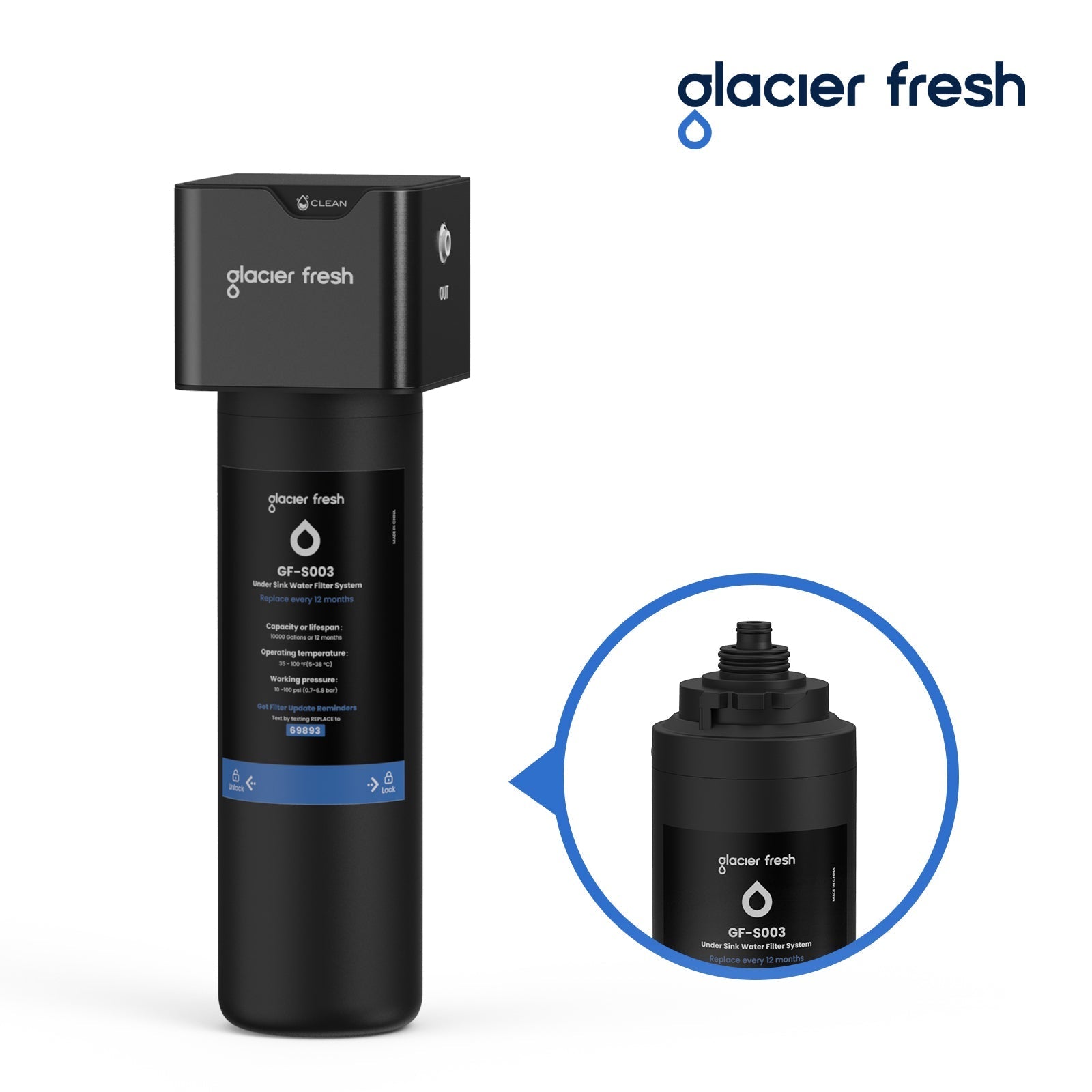 Safe Materials: GLACIER FRESH Under Sink Water Filter System is made from advanced coconut shell activated carbon with strong adsorption capacity with a 0.5-micron outer layer and food-grade materials, such as PP, NBR, and Stainless steel(304).