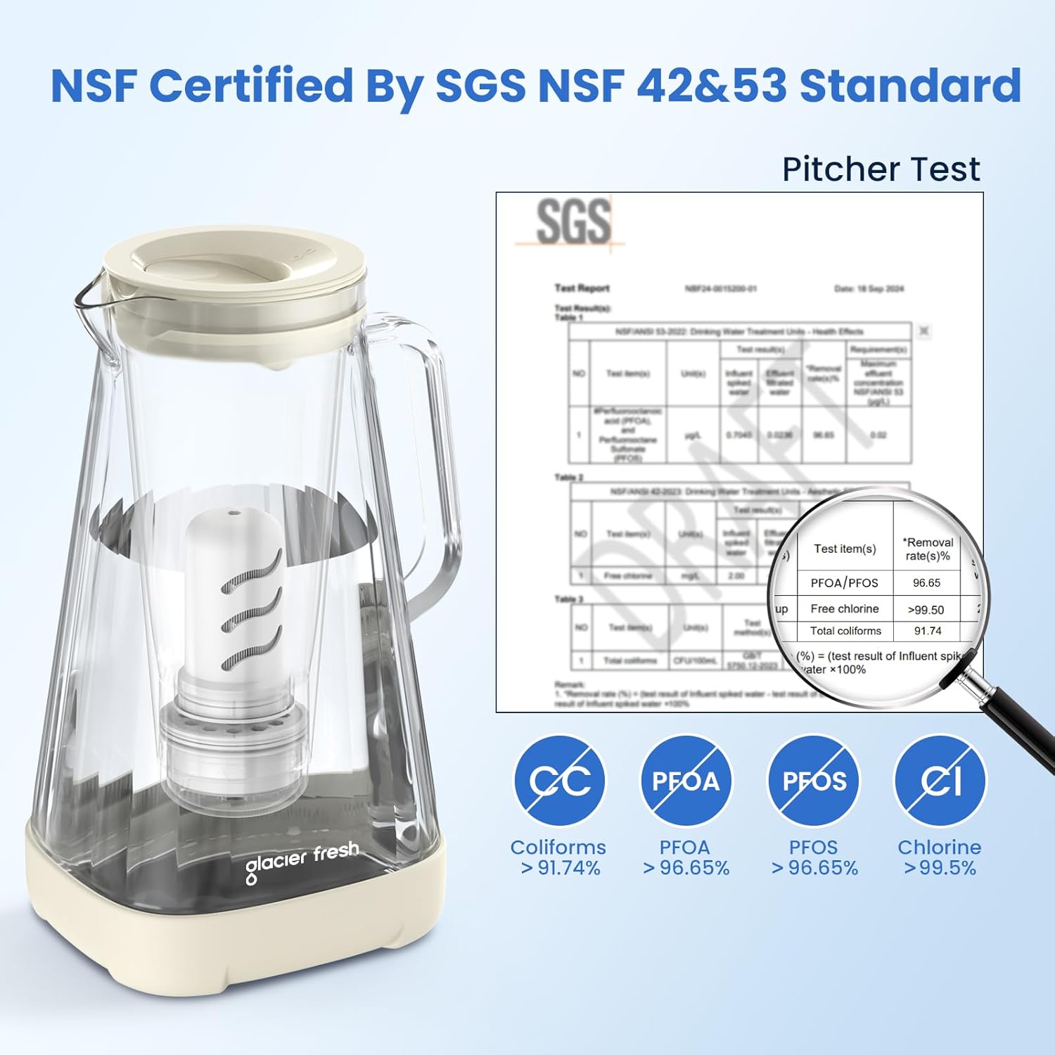 Eco-Friendly: Glacierfresh Water Pitcher can save up to 300 standard 16.9-ounce plastic water bottles or up to 2100 bottles a year. The filter can not only lower your costs and Improve taste but also reduce the waste of plastics and protect the environment.