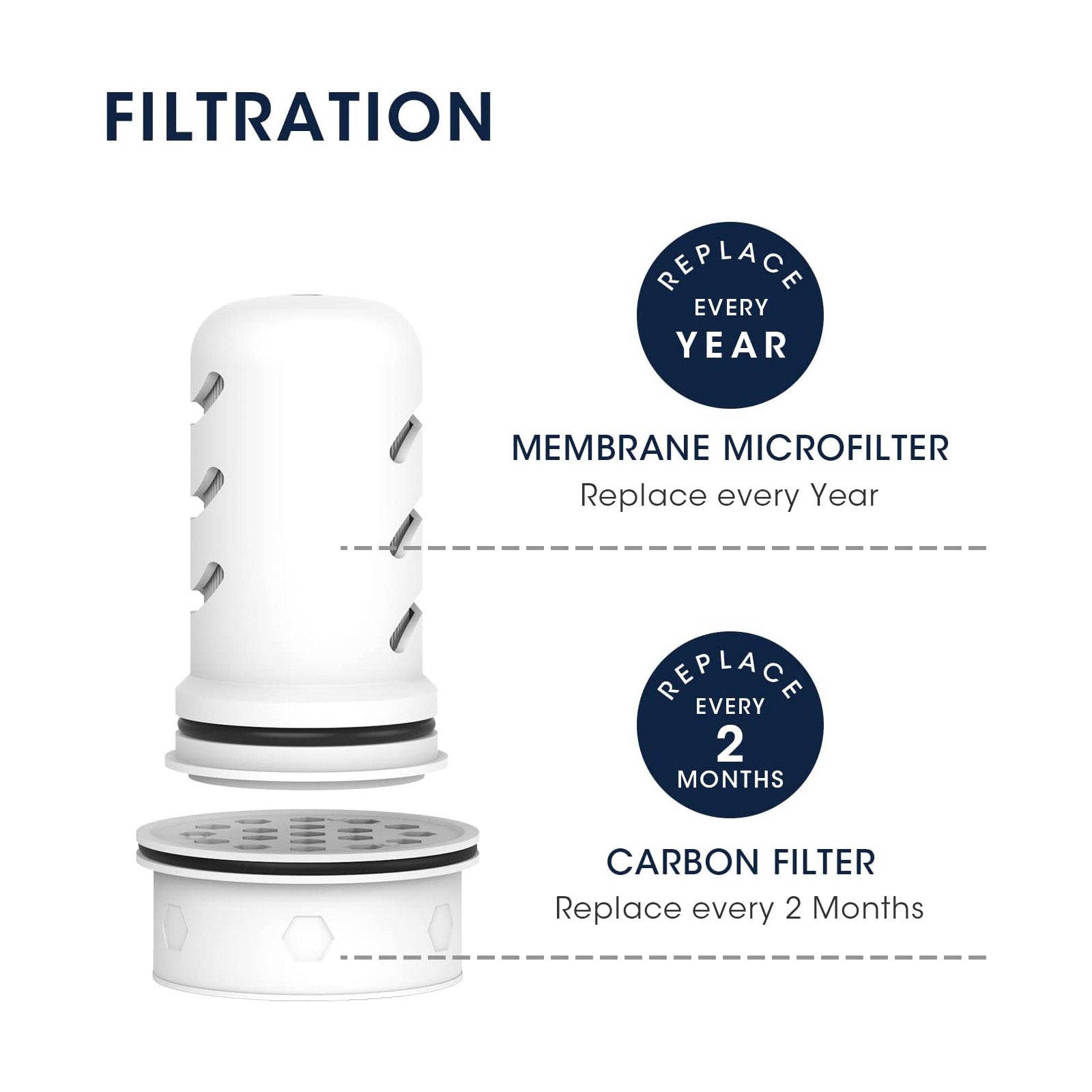 Long-lasting filter lifespan: Remember Changing your water filter regularly ensures that you have clear, refreshing, healthier, great-tasting water. Please replace Activated Carbon exchange filter after 150 liters or 2 months. Replace Membrane Micro filter every 264 gallons or 6-12 months, depending on your water usage, whichever comes first. To ensure you have healthier and great-tasting water, Glacierfresh recommend you change it every 6 months.