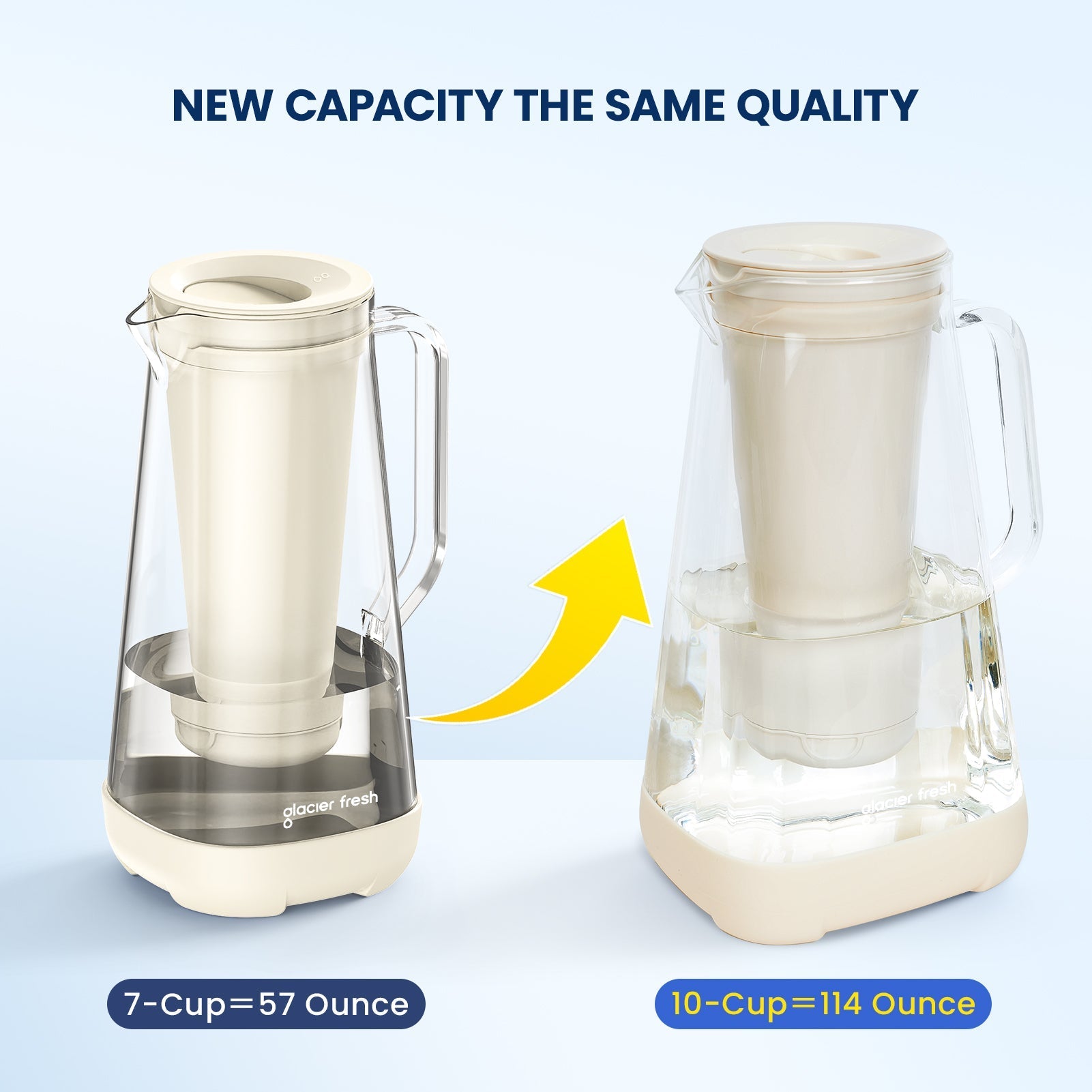 Excellent filtration technology: Glacierfresh 10-cup (80 ounces) pitcher water filter can help you solve water safety problems at a lower cost. This water filter uses 100% Sri Lanka-selected coconut shell carbon blocks with superb technology to produce filter materials with 0.2 microns pore size to reduce 99% of chlorine and improve the smell and taste of your water by an independent laboratory test. Also, helps you remove impurities while retaining beneficial minerals.
